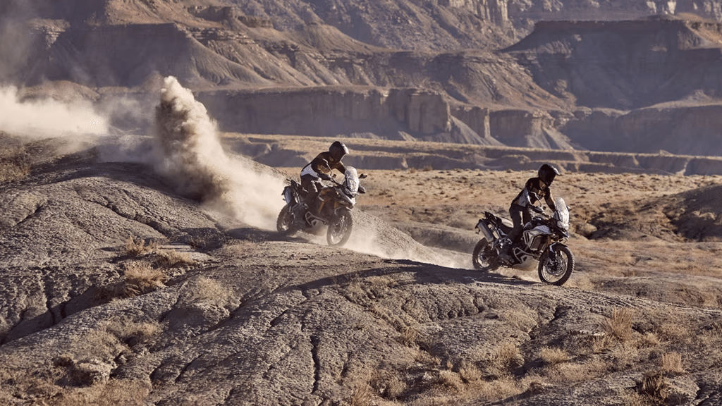 Para quem busca aventuras longas e travessias continentais, a Suzuki V-Strom 800DE e a Tiger 900 Rally Pro oferecem muito mais torque e eletrônica embarcada. A Suzuki aposta no motor de 776 cc com 84 cv e um pacote robusto que inclui quickshifter bi-direcional de série.