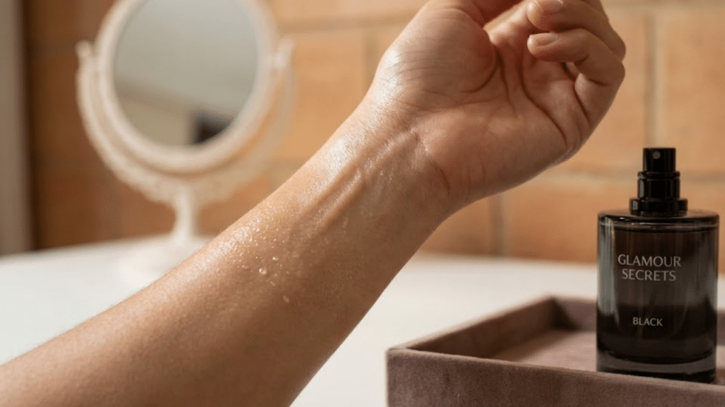 - Hidrate a pele com uma loção neutra antes da aplicação; a pele seca “bebe” o perfume rápido demais.
