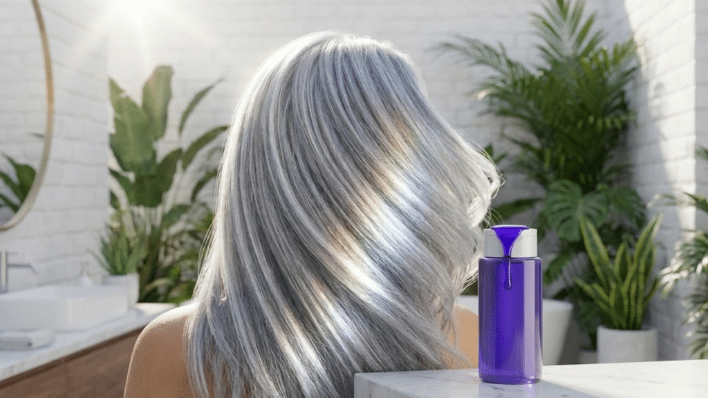 O enxágue completo é fundamental para impedir o acúmulo residual de pigmentos, que pode resultar em fios pesados ou sem brilho. Depois de remover o produto, a aplicação de um condicionador com pH equilibrado ajuda a fechar as cutículas e prolongar o reflexo acinzentado.