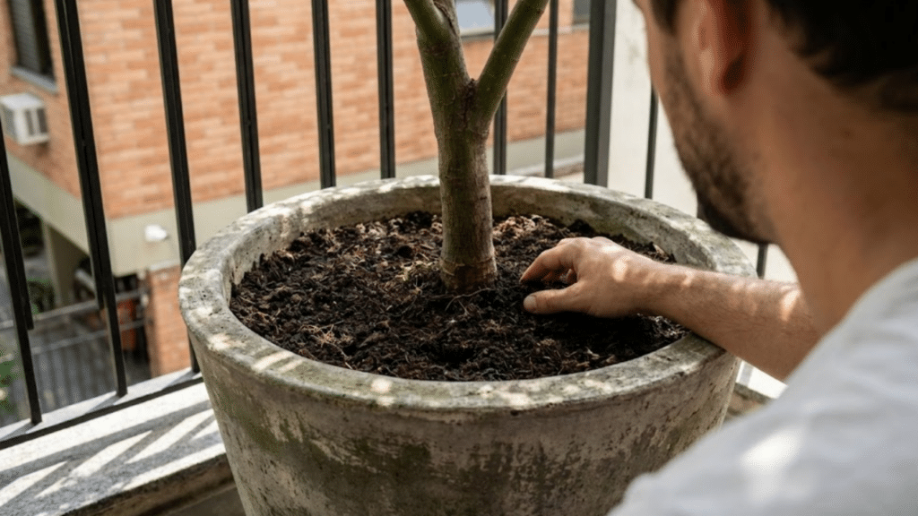 A observação atenta é a melhor ferramenta do jardineiro: se as bordas das folhas apresentarem um aspecto seco ou queimado, mude o vaso para uma posição com menos exposição solar direta. Varandas cobertas costumam oferecer o equilíbrio perfeito entre proteção e luminosidade para esta árvore majestosa.