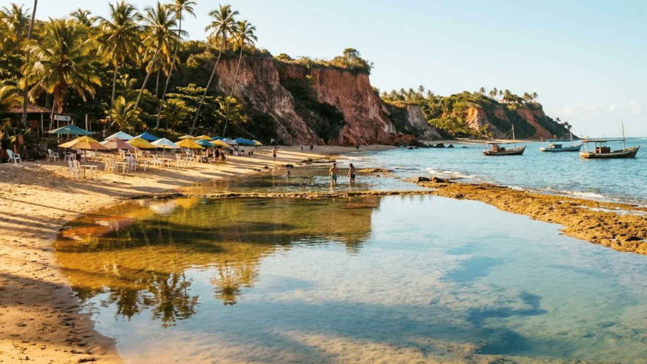 A praia do Nordeste conhecida pelo “efeito espelho” nas águas calmas revela piscinas naturais surpreendentes