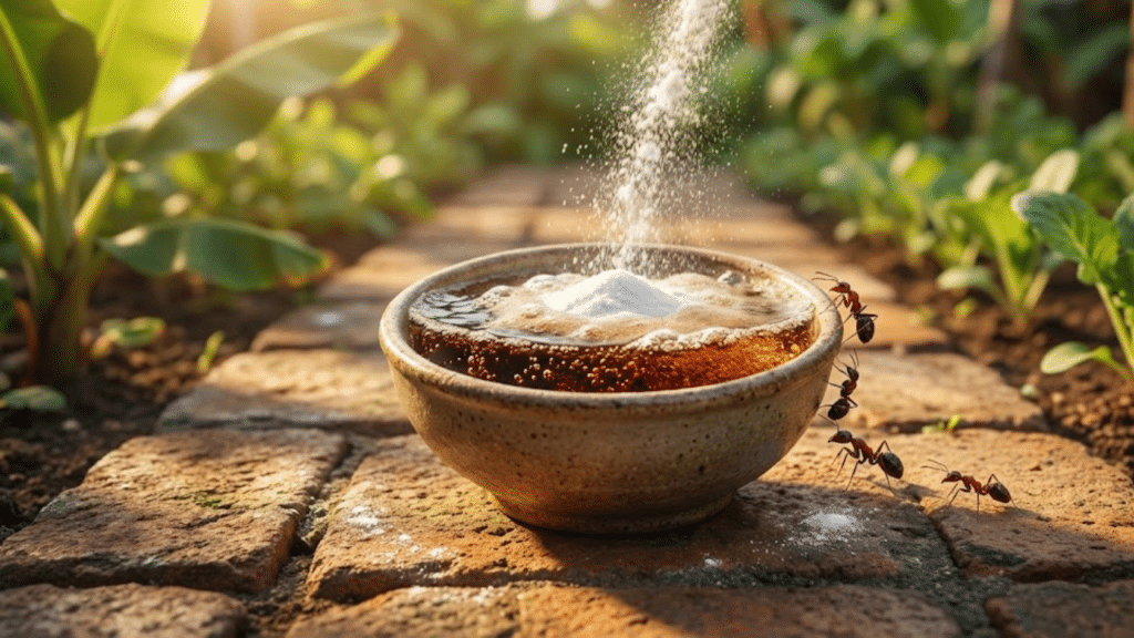 O papel do bicarbonato de sódio é complementar e atua de forma gradual, ajudando no controle da colônia ao longo do tempo. Quando misturado à bebida, ele altera a composição do líquido, e ao entrarem em contato com esse preparo as formigas ingerem a solução, o que auxilia no controle localizado, sem aplicação direta na terra e com menor impacto para o solo e o ambiente doméstico.
