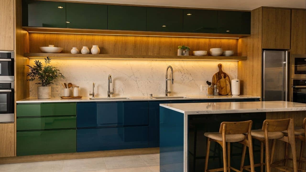 • Ponto Focal: Escolha apenas uma parede ou um bloco de armários para aplicar a nova cor, criando destaque sem pesar.