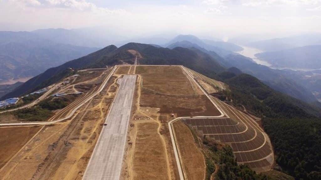 No alto de uma cadeia de montanhas na China, um penhasco de rocha sólida foi transformado em um aeroporto capaz de receber aviões comerciais, encurtando caminhos e reduzindo a dependência de estradas longas e sinuosas na região das Três Gargantas.