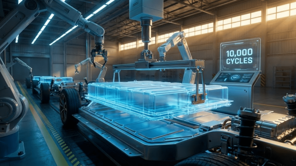 As baterias de estado sólido substituem o eletrólito líquido por compostos sólidos à base de sulfetos, o que eleva a densidade energética para cerca de 400 Wh/kg. Essa tecnologia promete autonomias superiores a 1.000 km, com recargas ultra-rápidas que se aproximam do tempo de abastecimento de um carro a gasolina em condições ideais.
