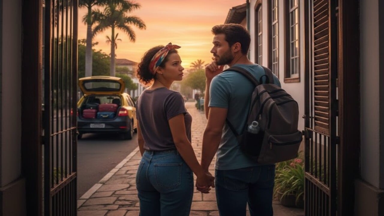 Casal conferindo casa antes de viajar