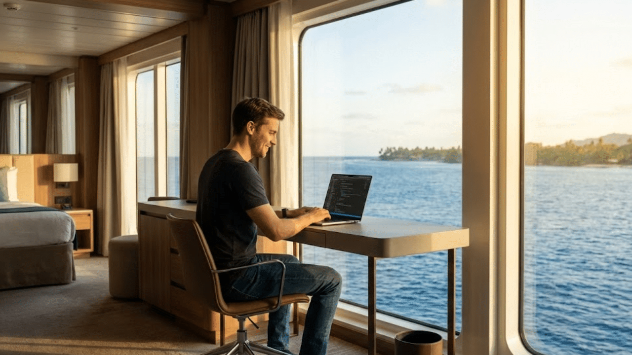 O plano do engenheiro é trabalhar remotamente enquanto o navio realiza uma volta ao mundo completa em um ciclo de 3,5 anos. A rota global prevê paradas de três a cinco dias em diversos portos da Europa, Ásia, Américas e Oceania. Para um nômade digital, a vantagem reside em conhecer o planeta sem a necessidade de arrumar malas, reservar voos ou lidar com a logística de diferentes hotéis.