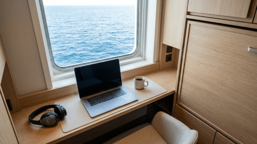 O estúdio escolhido por Austin faz parte da categoria “Discover” e possui 22 m² otimizados com cama retrátil, despensa, banheiro e uma escrivaninha estrategicamente posicionada com vista para o mar. O custo diluído ao longo do contrato equivale a aproximadamente US$ 2.000 mensais. Esse valor é consideravelmente inferior ao aluguel médio em San Diego, que ultrapassa os US$ 2.500 sem incluir alimentação ou lazer.