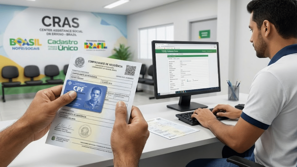 1. Ida ao CRAS: Procure a unidade mais próxima para realizar a inscrição no Cadastro Único portando CPF e comprovante de residência.