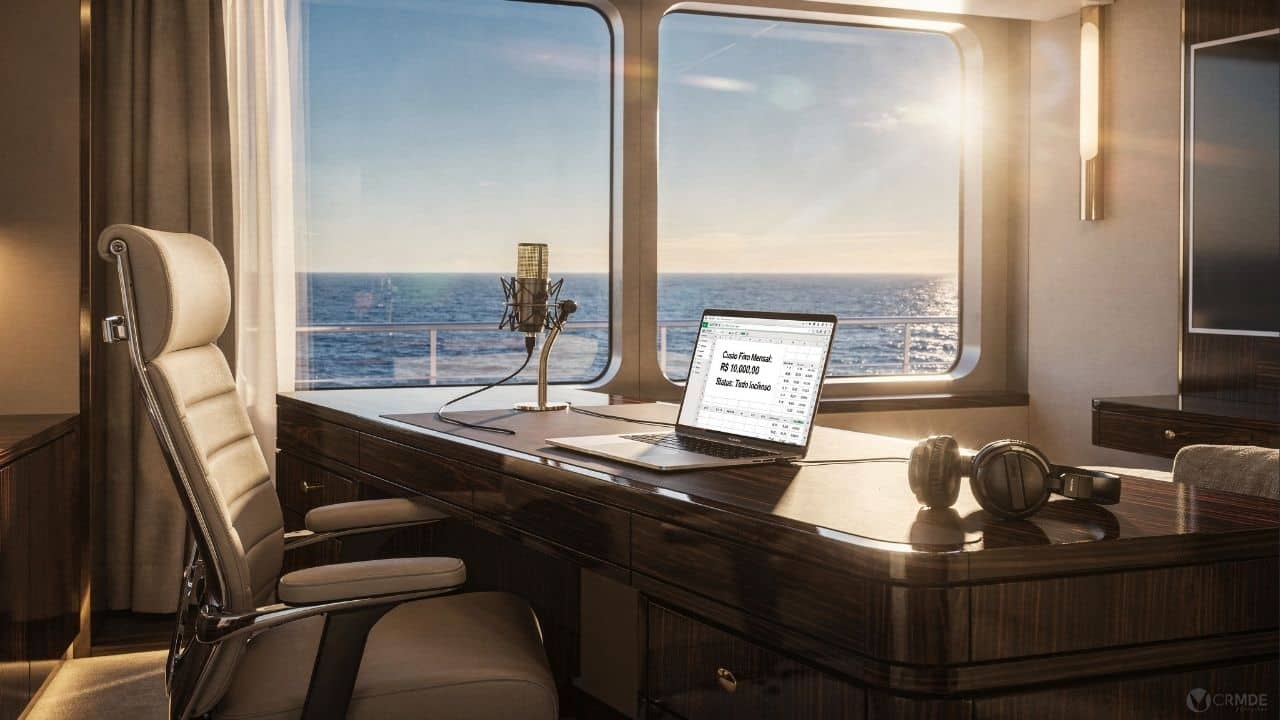 Navios modernos oferecem internet via satélite de alta velocidade para garantir a produtividade remota. Essa infraestrutura permite que profissionais, como engenheiros de software, realizem tarefas sem interrupções durante a navegação. O trabalho é concluído enquanto a embarcação se desloca entre diferentes portos internacionais.