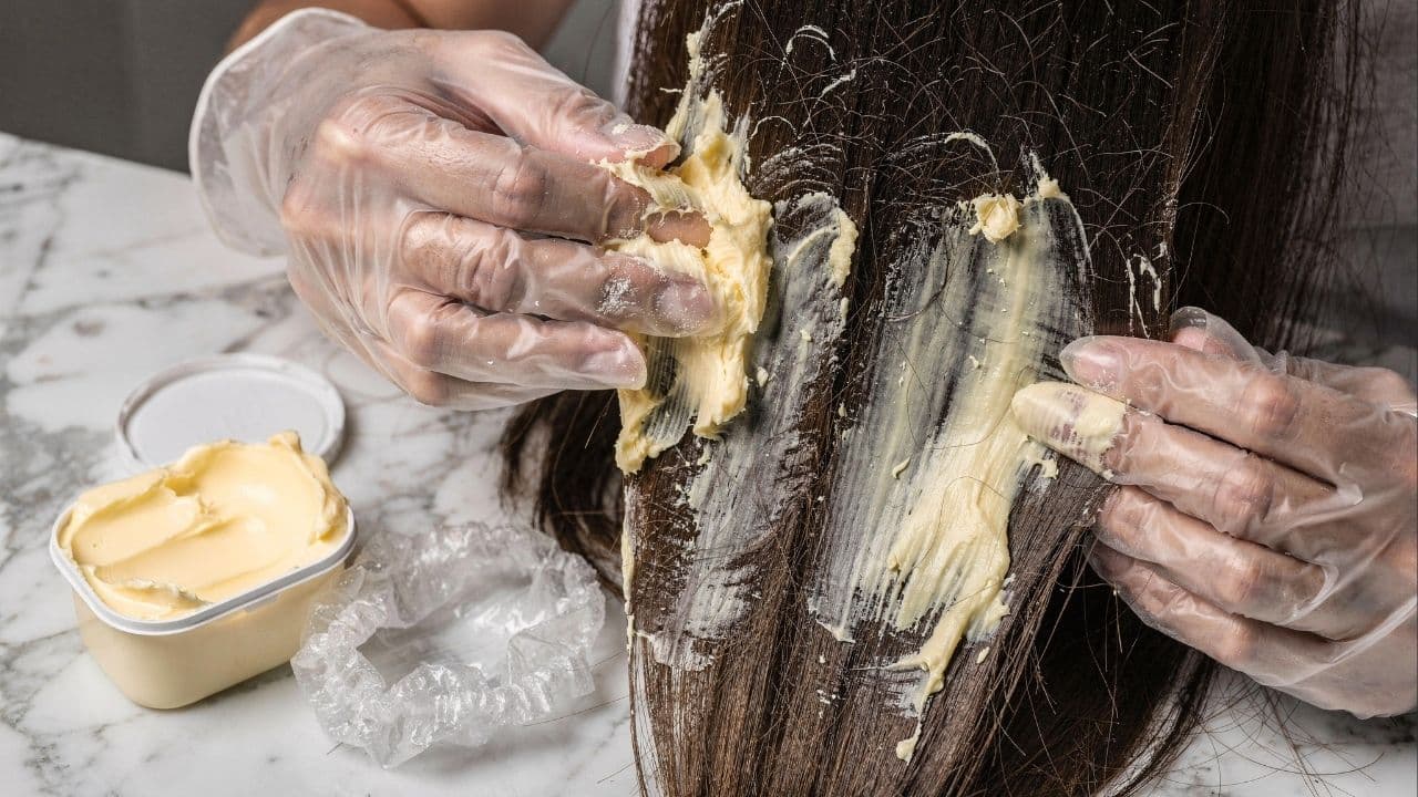 - Aplicação: Divida o cabelo em pequenas mechas e espalhe a margarina por toda a extensão dos fios.