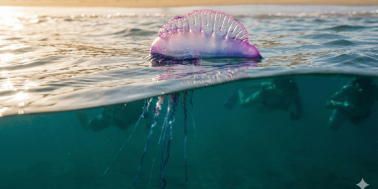Enquanto a “bexiga” colorida flutua acima da água (atraindo a curiosidade, especialmente das crianças), os seus tentáculos podem estender-se por impressionantes 30 metros abaixo da superfície. É aí que reside o perigo invisível: muitas vezes, o banhista nem sequer vê a parte flutuante, mas é chicoteado pelos tentáculos distantes.