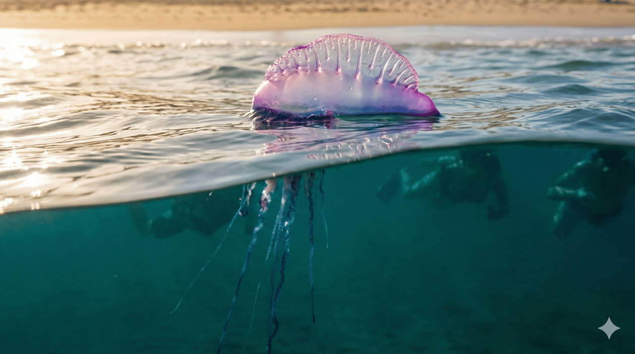 Mas afinal, que criatura é esta que engana pela beleza e ataca com tanta violência? Se pensou em “água-viva” (ou alforreca), enganou-se. A ciência explica que o buraco é — literalmente — mais em baixo.