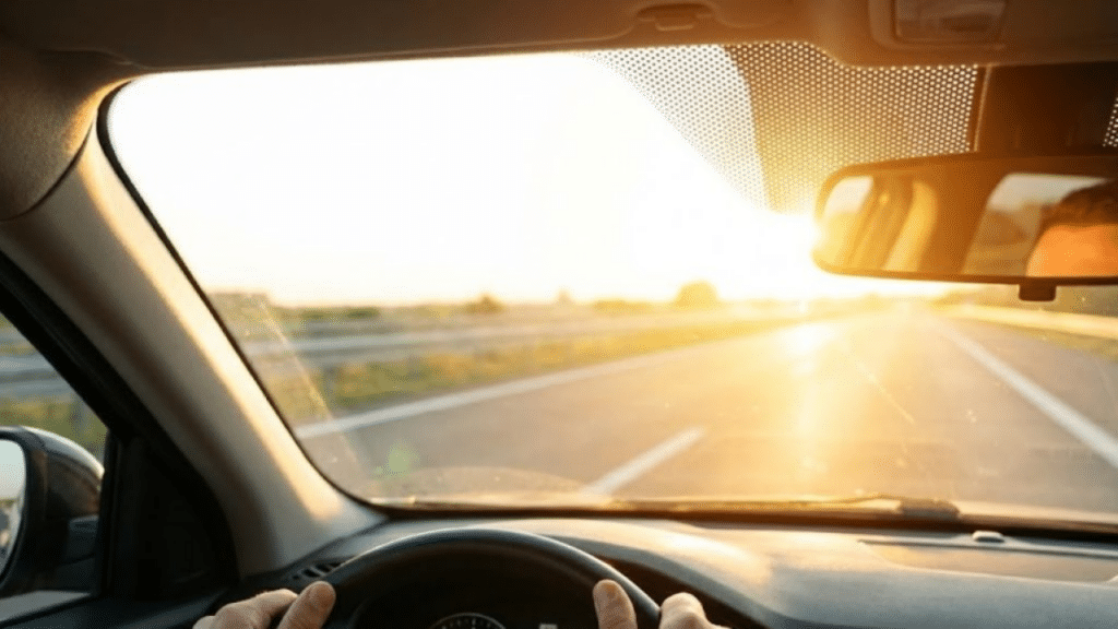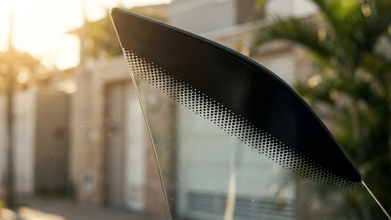 Em muitos modelos, o pontilhado se estende atrás do espelho retrovisor interno para atuar como uma terceira viseira solar. Essa aplicação reduz o brilho excessivo que o para-sol tradicional não consegue cobrir, protegendo a visão do motorista em ângulos críticos.