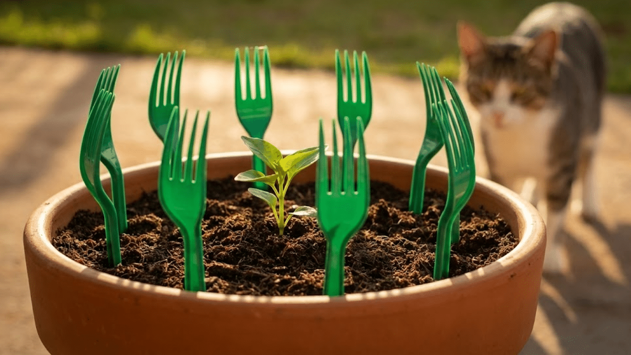 O uso de garfos de plástico na terra surge como uma solução de baixo custo para evitar que animais remexam vasos e destruam mudas jovens. A estratégia cria uma barreira física que incomoda invasores sem causar ferimentos, garantindo a integridade das plantas através de agentes físicos simples.