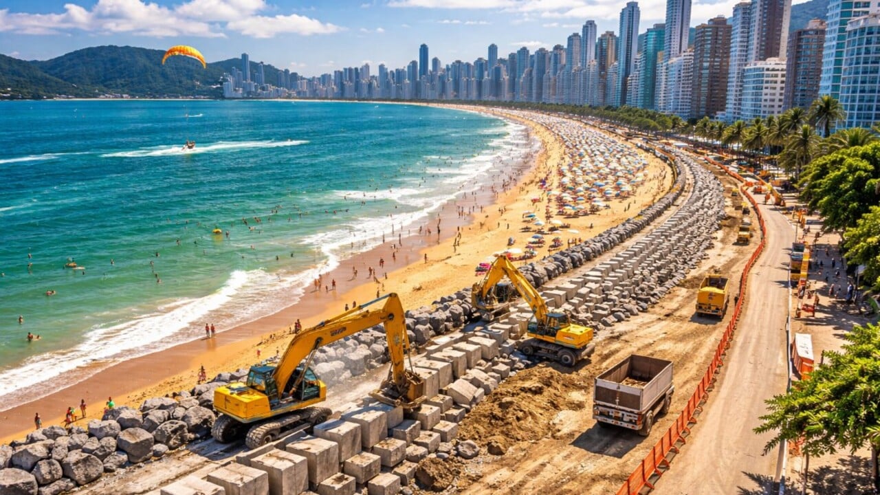 A revitalização da Praia Central de Balneário Camboriú entrou em nova fase com obras que pretendem redesenhar a orla até 2027, unindo proteção costeira, requalificação urbana e fortalecimento do turismo.
