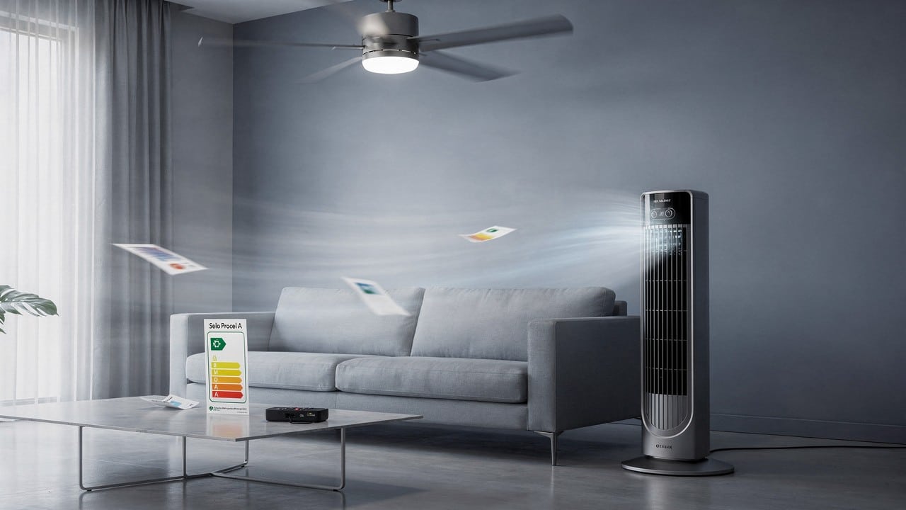 Na hora da compra, verifique se o modelo escolhido possui o Selo Procel A de economia. Funções como timer e desligamento automático são grandes aliadas em 2026 para evitar o desperdício durante a noite. Com a escolha certa entre teto ou torre, você assegura um ambiente fresco com um custo de operação muito inferior ao de um sistema de ar-condicionado convencional.