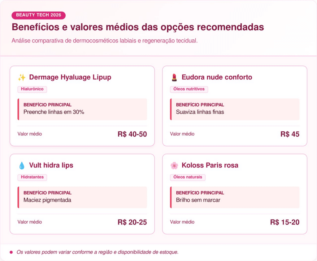 Existem excelentes alternativas nacionais que combinam pigmentação de alta qualidade com preços que não ultrapassam a marca de R$ 50. Esses produtos são desenvolvidos especificamente para atender às necessidades de hidratação intensa que a pele madura exige diariamente.