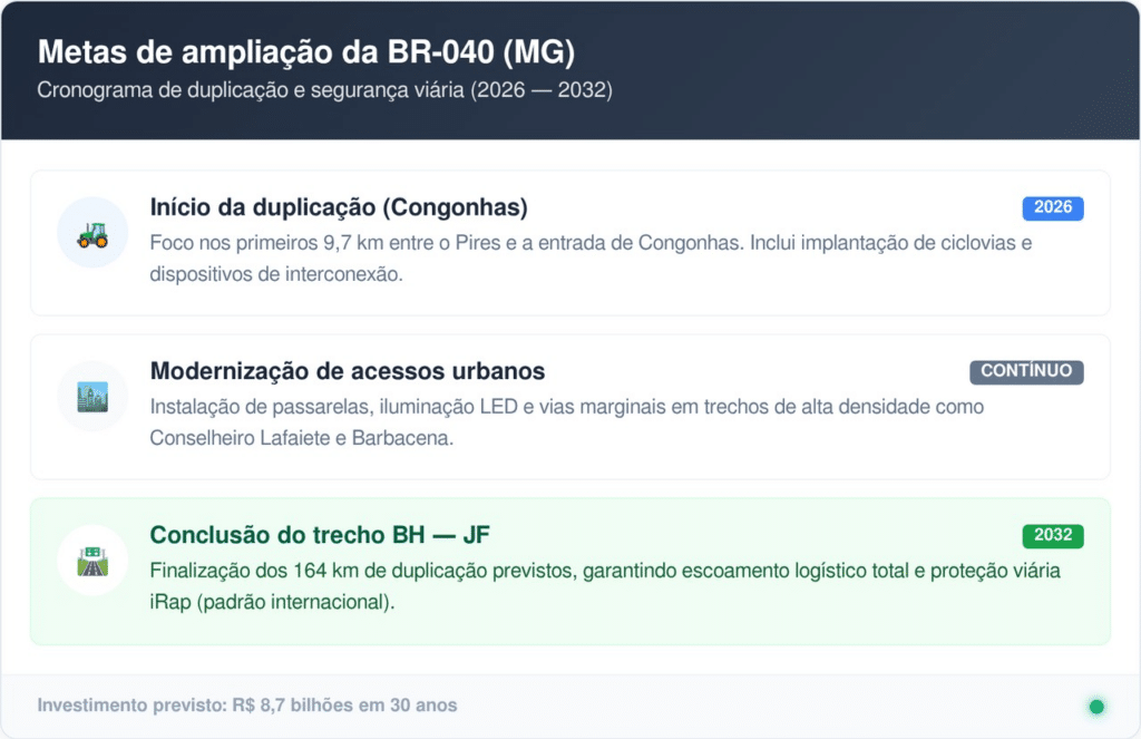 Além das obras físicas, a concessionária planeja campanhas educativas constantes para conscientizar caminhoneiros e motoristas de passeio. O foco é transformar a BR-040 em uma das rodovias mais seguras do país, reforçando seu papel essencial para o transporte e o desenvolvimento regional do Sudeste brasileiro.