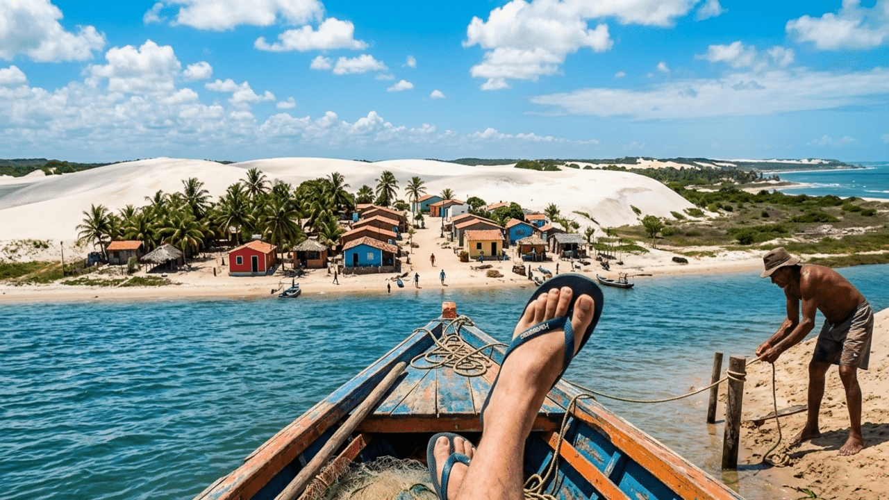 Entre o mar aberto e um braço de rio calmo, um pequeno vilarejo do litoral norte do Rio Grande do Norte segue quase isolado por água. Galinhos, com pouco mais de dois mil moradores, mantém um cotidiano que atrai turistas por ser guiado pela maré, pela pesca e por um turismo ainda controlado, em um cenário de ruas estreitas, charretes coloridas e uma península onde o ritmo desacelerado dita a rotina.