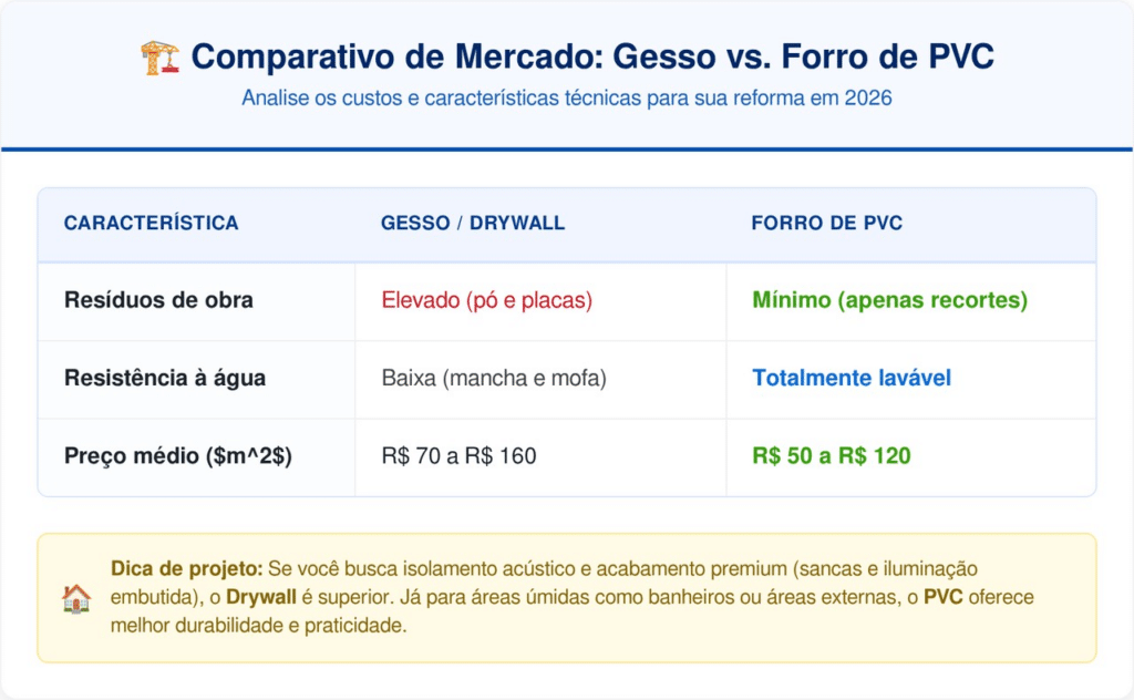 Optar por essa modernização é um investimento inteligente que une durabilidade extrema e economia direta na mão de obra. Ao substituir o antigo teto de gesso por painéis vinílicos, o proprietário garante uma reforma silenciosa, limpa e com um resultado visual que atende aos mais rigorosos padrões da arquitetura contemporânea.