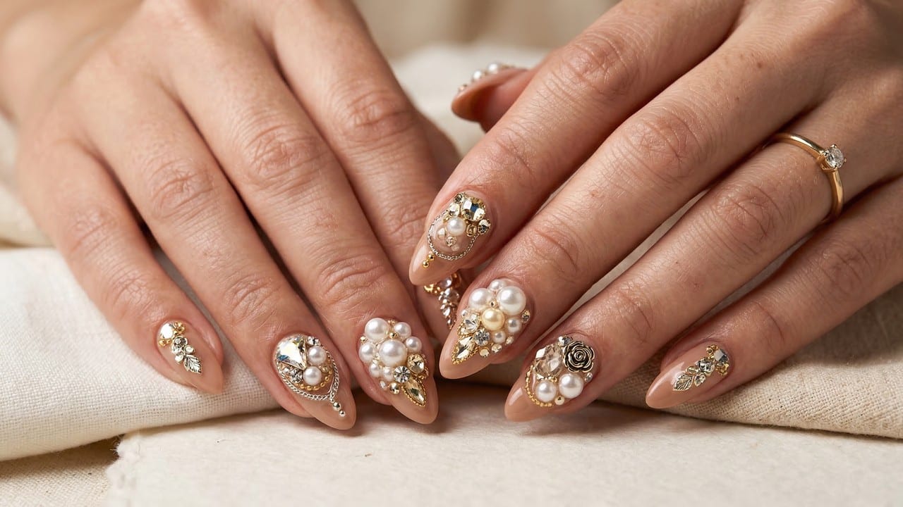 Para garantir que os enfeites não soltem precocemente, a preparação da unha é uma etapa crítica que exige hidratação e o uso de uma base fortalecedora. Geralmente, a fixação de pedrarias e pérolas é feita com cola específica ou gel de construção para assegurar uma longa durabilidade.