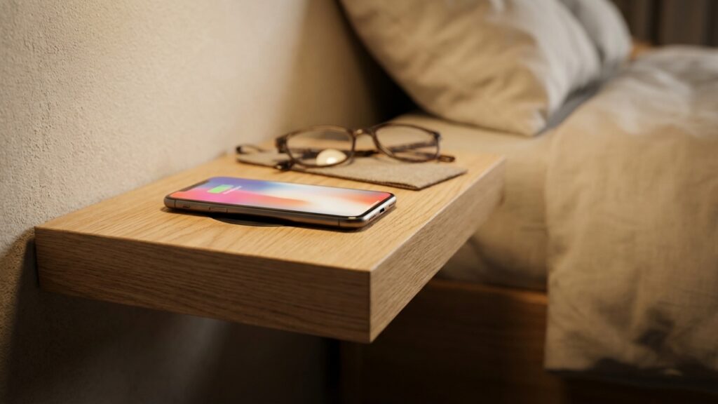 A segurança é a maior preocupação ao abandonar o móvel de chão. Uma prateleira de cabeceira deve suportar pelo menos 18 kg para garantir que luminárias, livros e dispositivos eletrônicos fiquem estáveis. A instalação exige buchas específicas para alvenaria ou reforços internos se a parede for de gesso acartonado.