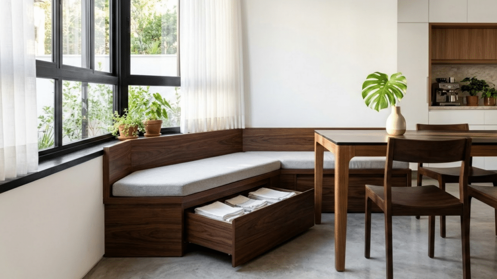 Os bancos embutidos estão conquistando cada vez mais espaço em projetos de interiores modernos, consolidando-se como uma alternativa inteligente às cadeiras tradicionais. Essa solução, vinda da Europa, promete transformar salas de jantar e cozinhas com foco em aproveitamento máximo.