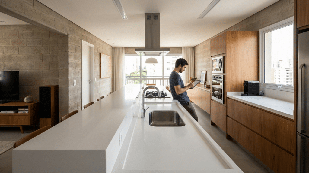 Arquitetos apontam que a baixa manutenção é o principal motivo dessa troca. Enquanto o mármore exige selagem constante para não encardir, o quartzo se mantém impecável apenas com um pano úmido e sabão neutro. Em 2026, com a rotina cada vez mais corrida, a praticidade virou o novo sinônimo de luxo nas capitais brasileiras.