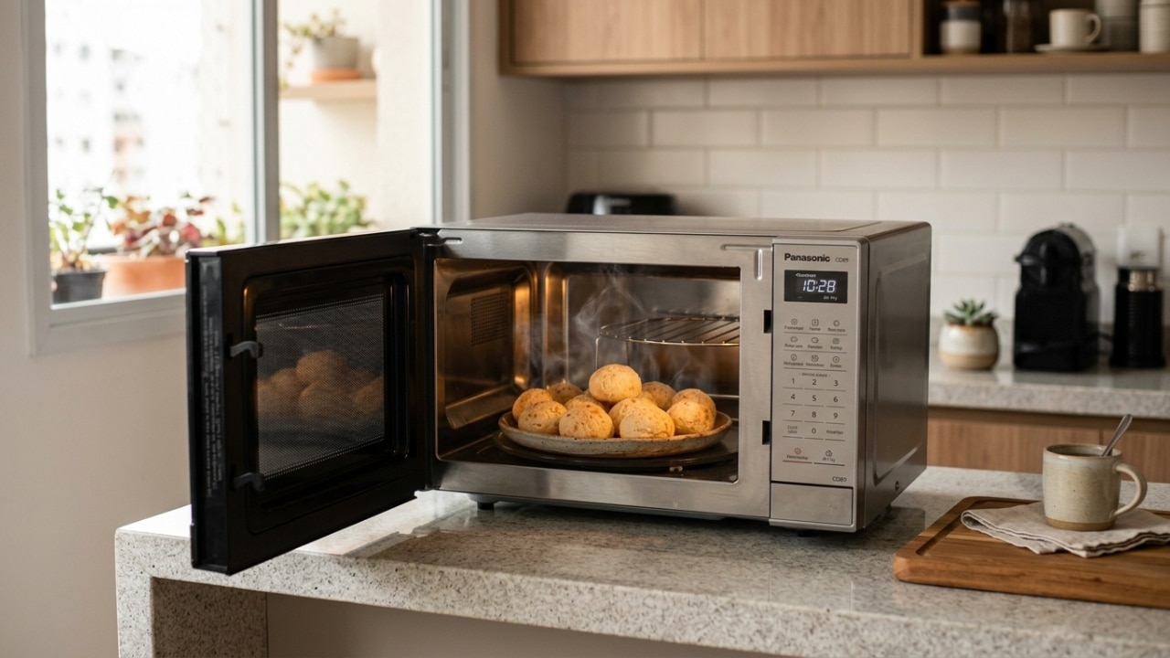 Este aparelho combina tecnologias que antes exigiam três equipamentos distintos. No Brasil, a Panasonic liderou esse movimento com o modelo CD89, o primeiro a integrar a função de fritura sem óleo (airfryer) diretamente no sistema de micro-ondas, com capacidade de 30 litros.