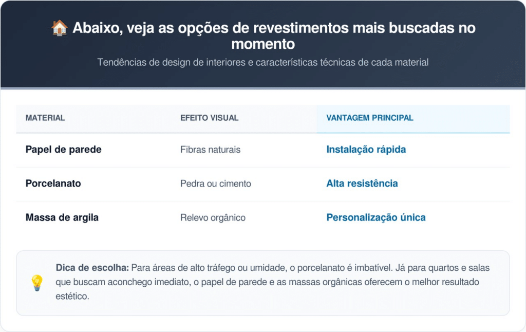 Para quem busca praticidade sem abrir mão do estilo, o mercado oferece opções que imitam perfeitamente elementos da natureza com alta durabilidade. A tecnologia de impressão digital em porcelanatos alcançou um nível de realismo que confunde os olhos mais atentos nas reformas.