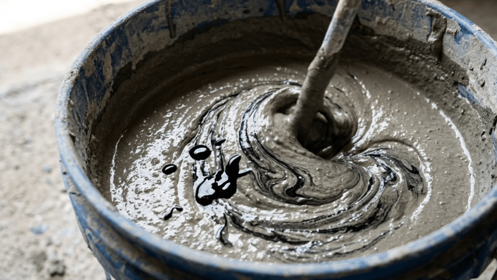Adicione o pigmento lentamente até atingir a cor desejada, lembrando que a massa costuma clarear levemente após a secagem total. A consistência deve ser cremosa, semelhante a um reboco fino, facilitando o espalhamento com o rolo ou a desempenadeira metálica.