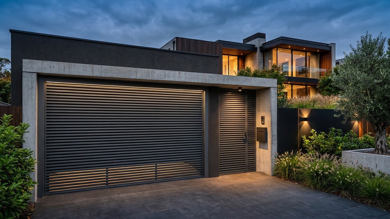 O alumínio ripado tornou-se a escolha predileta por unir leveza e durabilidade. Ao contrário do ferro, que exige manutenção constante contra a corrosão, o alumínio é resistente e preserva a mecânica dos motores de garagem. Suas réguas delgadas criam um efeito visual que alonga a fachada, conferindo modernidade imediata à casa.