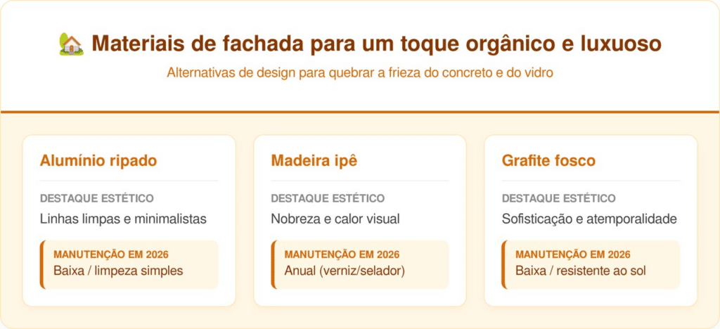 Para quem busca um toque mais orgânico na sociedade urbana, o uso de madeiras nobres como o Ipê ou Cumaru surge como uma alternativa de luxo. Esses materiais quebram a frieza do concreto e do vidro, garantindo exclusividade e conforto visual logo na entrada do imóvel: