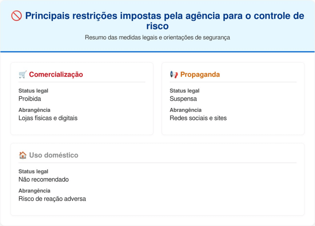 Estabelecimentos que mantiverem o estoque da empresa citada na RE 703/2026 após a publicação da norma estão cometendo um ato ilegal. A fiscalização será intensificada para garantir o recolhimento total de cada unidade fabricada sem aval técnico.