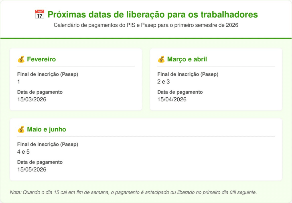 O calendário de 2026 iniciou em 15 de fevereiro e segue até 15 de agosto, com os saques disponíveis até o dia 29 de dezembro de 2026. Para quem recebe via Caixa Econômica Federal (PIS), a liberação ocorre de acordo com o mês de nascimento. Já no Banco do Brasil (Pasep), a regra segue o final da inscrição.