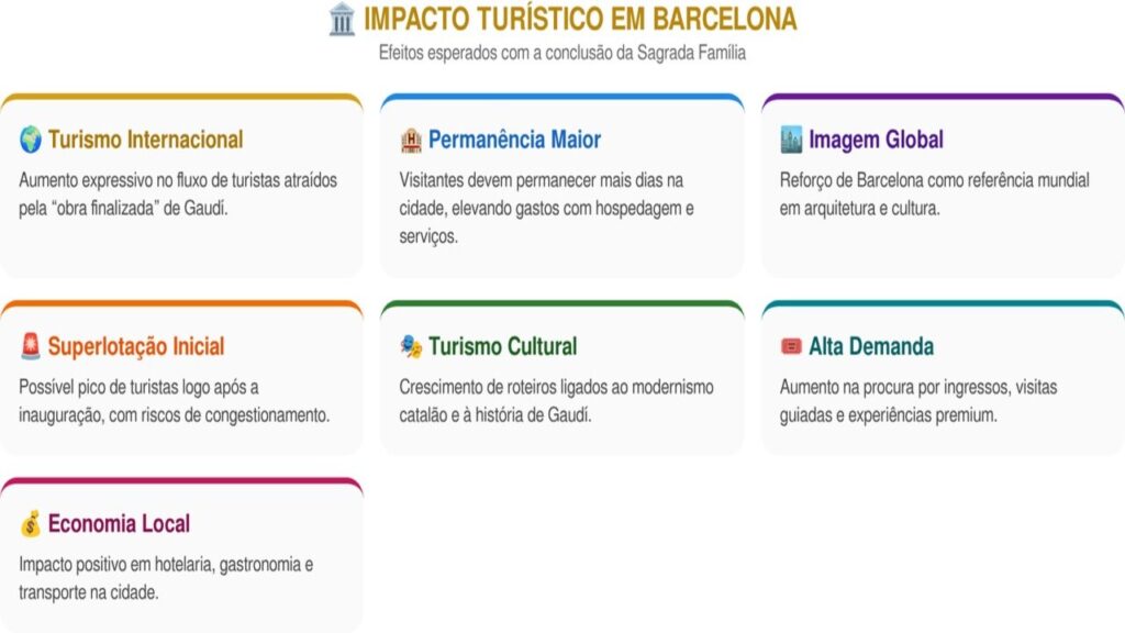 A entrega da Sagrada Família completa deve reforçar ainda mais Barcelona como um dos destinos turísticos mais visitados da Europa. A expectativa é de aumento expressivo no número de visitantes anuais.