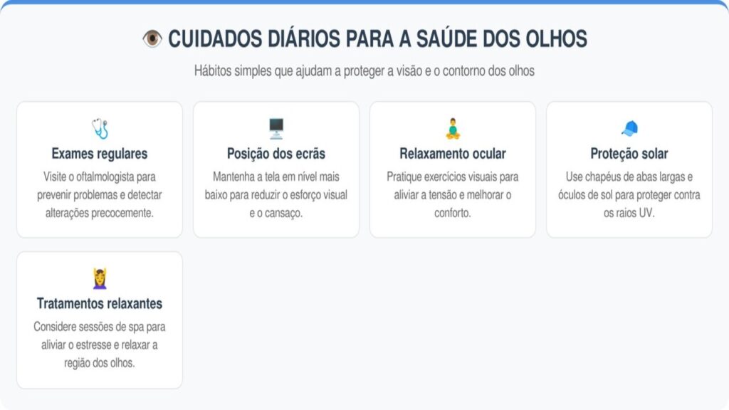Quais cuidados diários ajudam a proteger a visão e o contorno dos olhos?