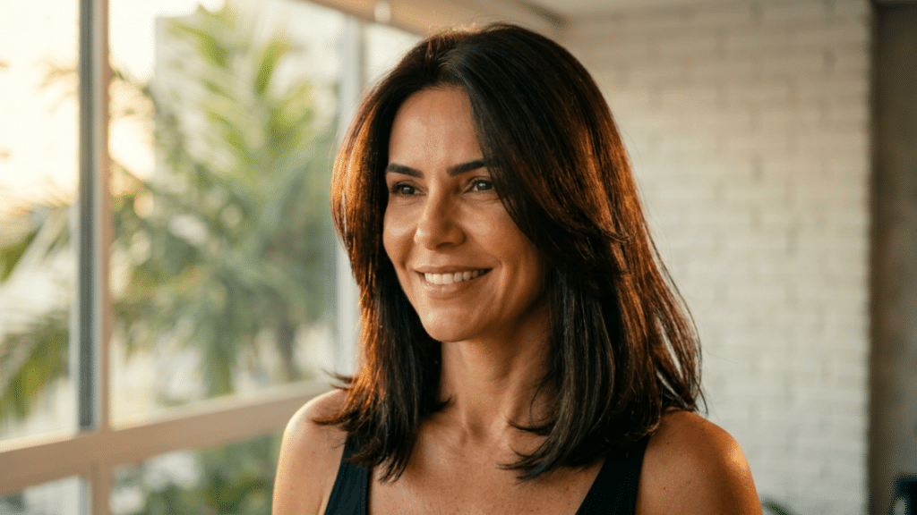 Além do corte, cuidar da saúde da fibra capilar é fundamental para evitar a porosidade comum após os 40 anos. O uso de máscaras reestruturantes de marcas como Lola Densidade ou L’Oréal ajuda a manter os fios encorpados e com brilho, potencializando o efeito rejuvenescedor do visual.