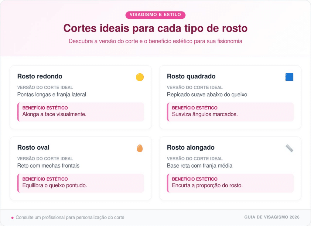 Analise abaixo as versões recomendadas para cada tipo de rosto e seus benefícios estéticos: