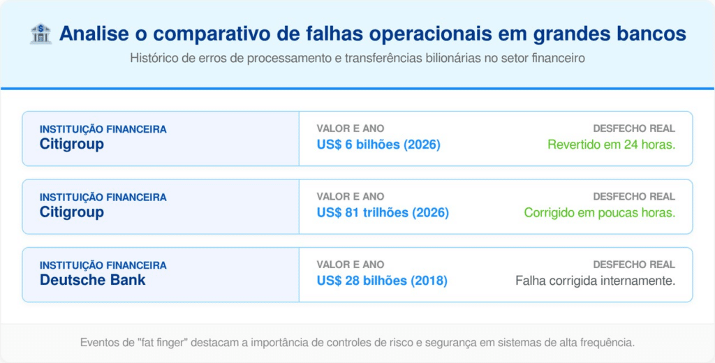 Para entender a magnitude do problema, é necessário comparar este evento com outras falhas históricas que abalaram o setor bancário nos últimos anos. A transparência sobre esses dados é fundamental para que investidores e reguladores monitorem a saúde das operações globais em 2026.