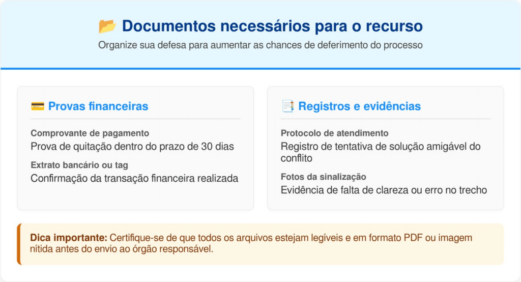Para aumentar as chances de deferimento do recurso, organize sua defesa com os seguintes documentos: