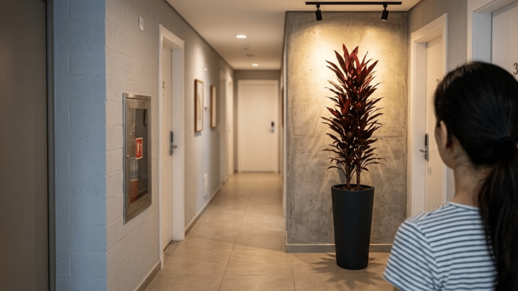Posicionar um vaso de dracena na entrada de casa ou em corredores de passagem renova completamente a energia do ambiente, trazendo um toque exótico sem complicação.
