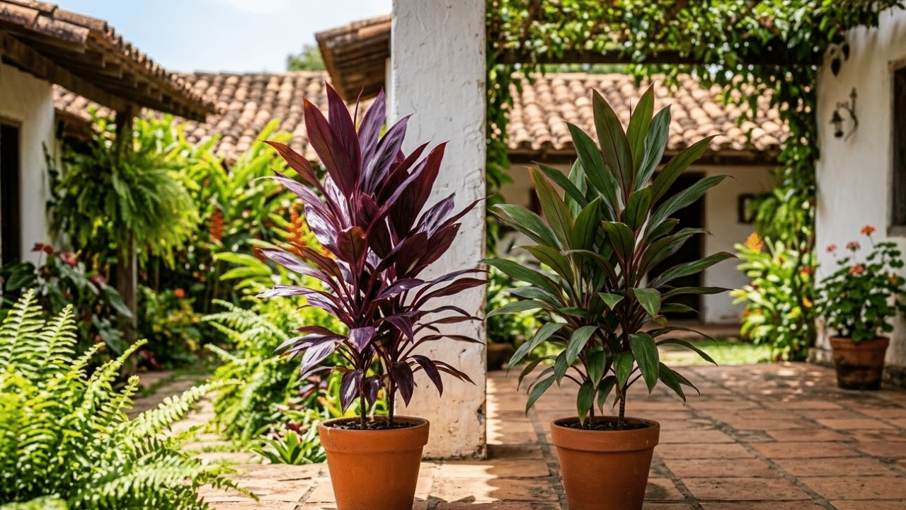 A Cordyline terminalis, nome científico da dracena, é valorizada por sua silhueta vertical, que cria pontos de destaque no jardim sem ocupar muito espaço. Ela funciona tanto isolada em vasos decorativos quanto em conjuntos com plantas mais baixas e volumosas.