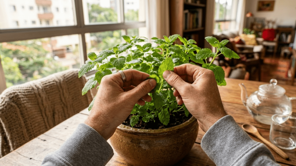 Ambas são extremamente fáceis de manter em ambientes internos. A hortelã cresce rápido e pode ser colhida durante todo o mês para chás ou águas aromatizadas. A erva-cidreira, por sua vez, é robusta e sobrevive bem com regas esporádicas, garantindo que você sempre tenha folhas frescas para uma infusão relaxante antes de dormir.