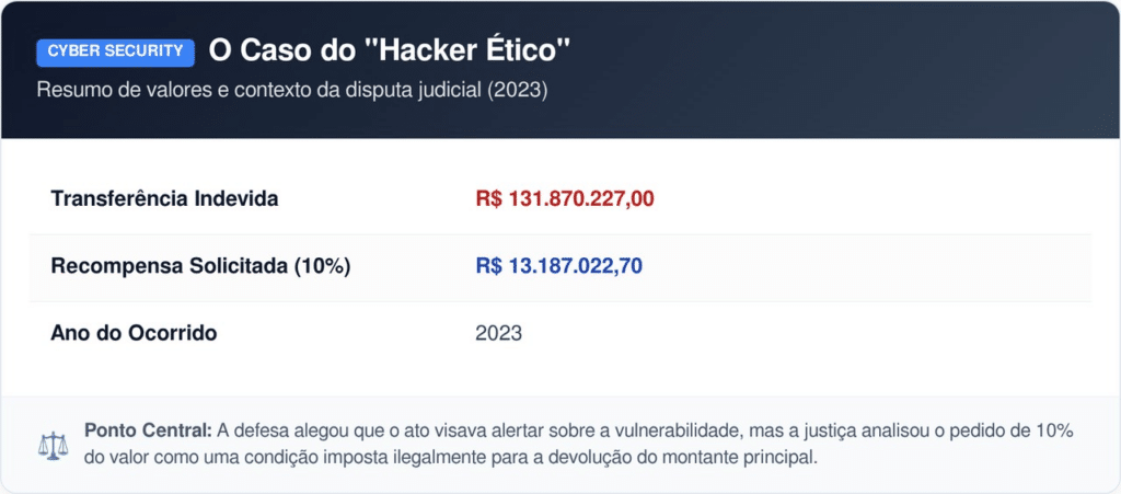 O desfecho deste caso servirá como um precedente importante para o direito bancário nacional. Ele definirá se valores digitais transferidos por erro podem ser legalmente comparados a “objetos perdidos”, garantindo ao cidadão o direito de ser recompensado por sua honestidade comprovada.