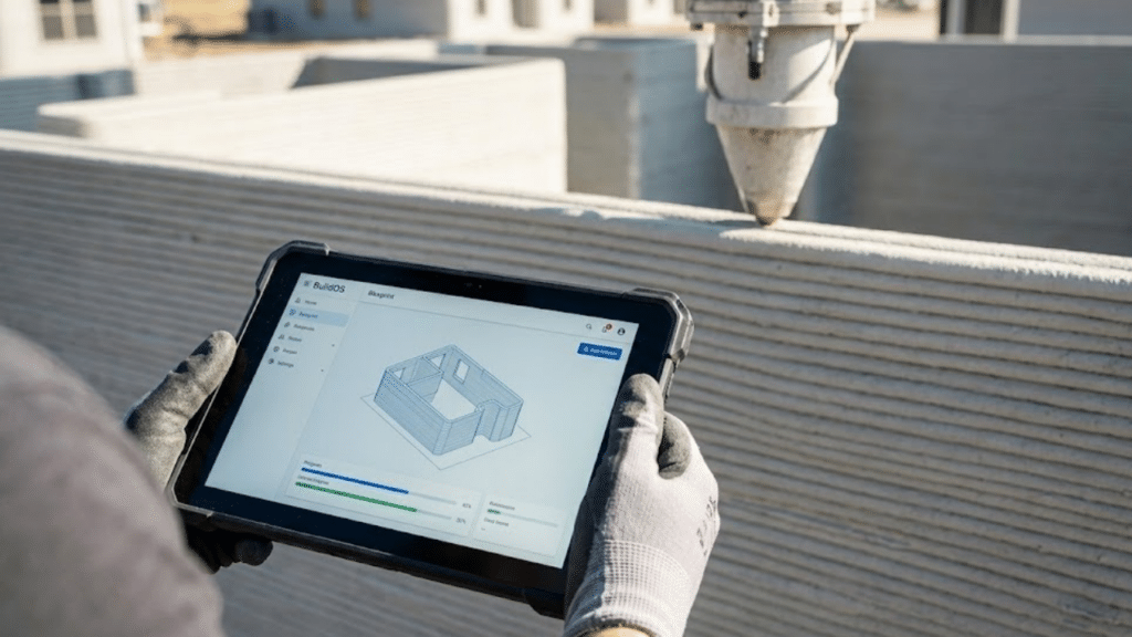 A fase de levantamento das paredes é a que apresenta o ganho mais drástico, sendo finalizada em apenas 24 a 48 horas por residência. Enquanto o método tradicional de wood frame (madeira) ou tijolos leva semanas para estruturar os cômodos, a automação da ICON permite que apenas 3 operadores controlem todo o processo via software BuildOS.