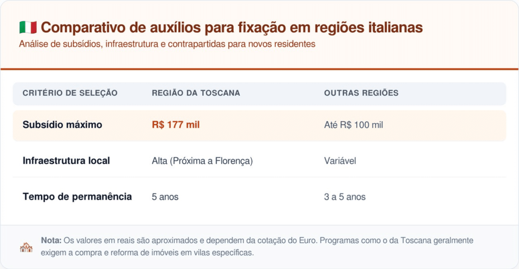 Diferente de regiões isoladas no sul, as vilas toscanas oferecem infraestrutura de alta qualidade e proximidade com centros globais como Florença. O investimento do governo cobre até 50% dos gastos com a moradia, transformando o sonho da casa própria na Europa em uma meta viável em 2026.