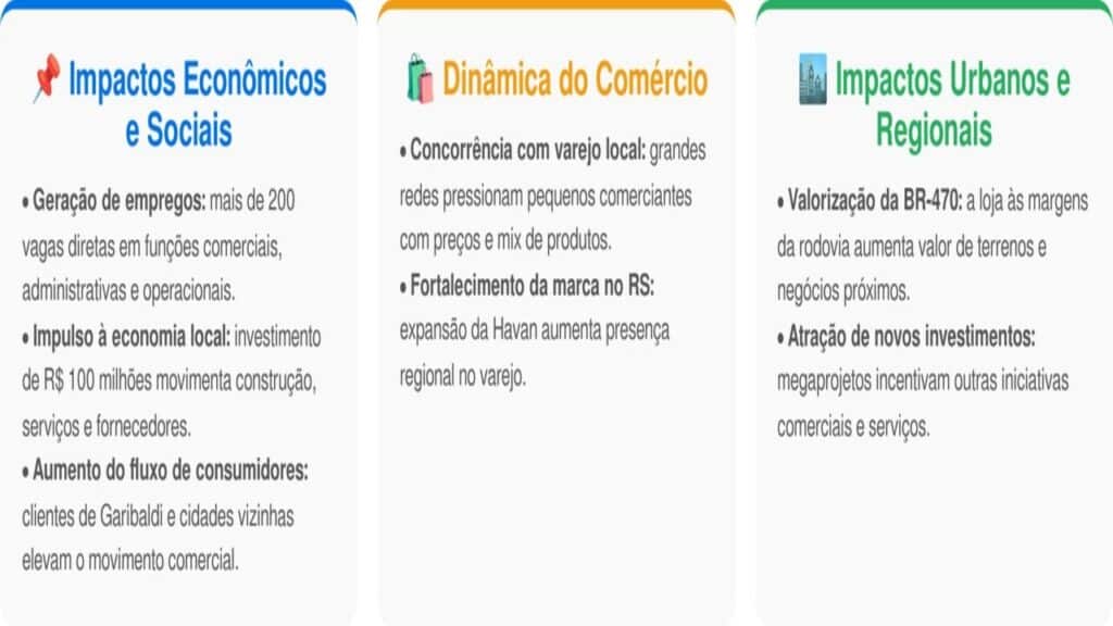 A escolha de Garibaldi segue a estratégia da Havan de investir em cidades de porte médio, oferecendo megalojas completas com conforto e arquitetura icônica. A presença da loja promove geração de empregos, turismo e incentivo ao comércio local.
