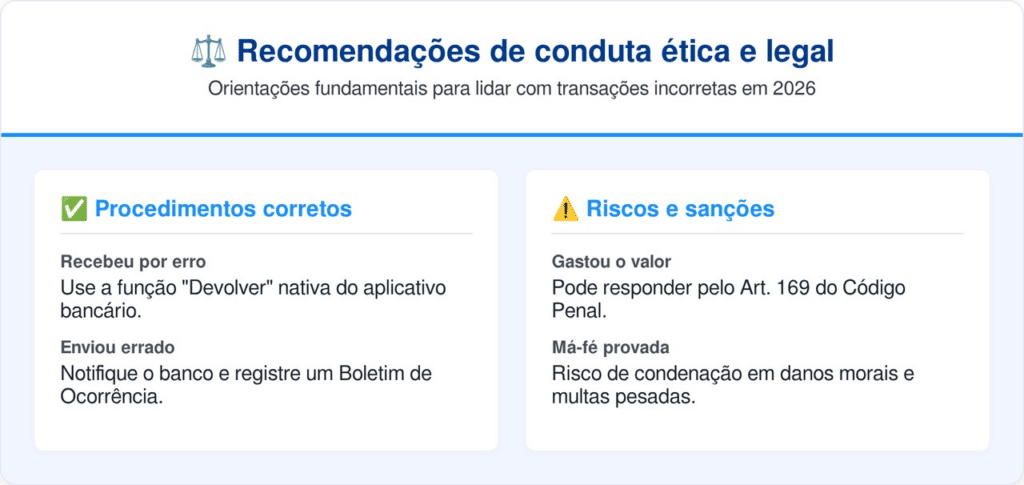O entendimento dos tribunais é de que a facilidade das transferências instantâneas exige responsabilidade ética equivalente dos usuários. Em 2026, a utilização de provas digitais, como prints de mensagens, é determinante para blindar o processo contra alegações falsas de desconhecimento do depósito.
